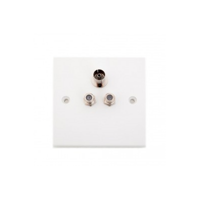 2 x Satellite and 1 x TV Wall Plate. Single Gang. Plug and Play Audio Visual Faceplate.