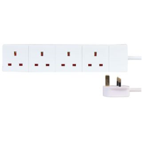 White surged protected 4 gang 2 metre UK extension lead with two USB charging ports for adding additional power sockets for electrical equipment and powering USB equipment. Ideal power block for UK electrical appliances such as computers, desktops, TV's, kitchen equipment, phone chargers and any other 13amp UK electrical equipment.