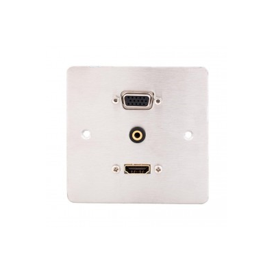 A high quality metal AV wall plate, HDMI 2.0v 4K, VGA and audio. A simple plug and play connection with female sockets front and rear.