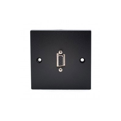 VGA wall plate with cable prewired to the wall plate, presented with female socket on the front and a male plug on the rear.