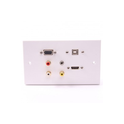 Double Gang HDMI, VGA, USB B, 3.5mm, RCA Wall Plate. 1 to 10 Metres