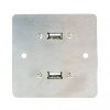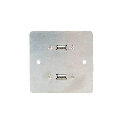 Twin USB A-A plug and play wall plate, presented with female sockets on the front and rear fo the wall plate