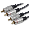 A high quality screened twin RCA phono cable for transferring left and right sound between audio visual devices such as projectors, PCs, Laptops, LCD and TVs