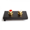 Twin phono rca black euro module presented with sockets on the front and solder tags on the rear.