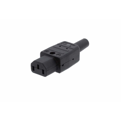 Cable mount C13 black rewireable straight IEC connector for cable thickness up to 1.5mmsq