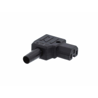 Cable mount C15 hot condition black rewireable left angle IEC connector for cable up to 1.5mmsq