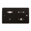 Black Metal Double Gang HDMI VGA USB B & 3.5mm Wall Plate.