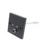 HDMI and TV wall plate presented with female sockets on the front and rear of the outlet.