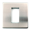 A brushed steel screw less wall plate frame for one 25mm x 50mm euro module. This screw less brushed steel finished faceplate frame is 85mm x 85mm and is supplied with fixing screws.