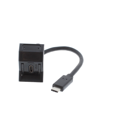 Floor box style LJ6C Black USB 3.2 (Gen1) Type C female to male module (approx 15cm), The Gen 1 USB C keystone LJ6C module transmits power, data and audio visual at speeds up to 10Gbps.