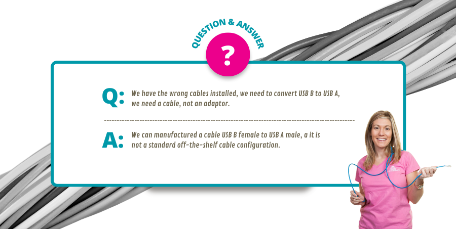 Recently, we encountered a situation where a customer was using older models of interactive whiteboards. These whiteboards were equipped with only USB A ports, a detail that was not communicated to our installation team. As a result, the cables that were installed had USB B connectors, leading to a compatibility issue.