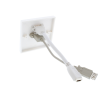White single gang plastic HDMI and USB A wall plate.