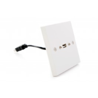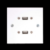 Twin USB A-A plug and play wall plate, presented with female sockets on the front and rear fo the wall plate