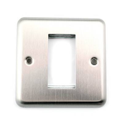 Our huge selection of wall plate frames and finishes include stainless steel, satin chrome, polar white, black nickel to brass to name a few for modular solutions connections from 1 up to 16 spaces