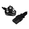 A moulded 3 pin 250V 16A plug, approved for South Africa (SABS) to IEC C13 connector using H05VV-F 3x1.00mm cable 2.5m black.