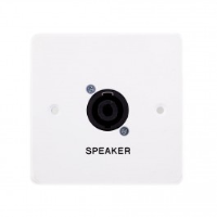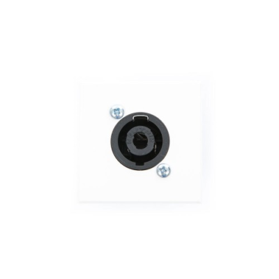 Speakon 4P euro module presented with female socket on the front and solder tags on the rear.