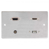 Metal double gang AV wall plate. HDMI, SVGA, 3.5mm and USB A connections.