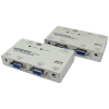 - The Local Unit duplicates the input signal for local use (2 monitors) and transmits the SVGA signal to a Remote Unit, when the signal is received by the Remote Unit, via CAT5E connector the Remote Unit broadcasts the signal to two SVGA outputs.