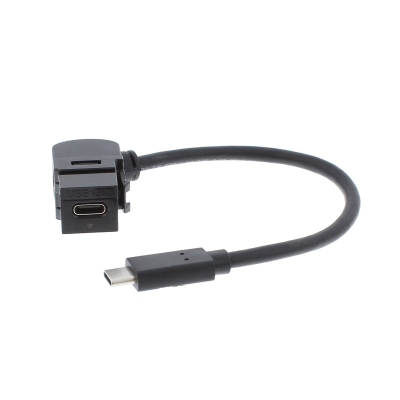 Black USB 3.2 Type C female to male (approx 15cm), female socket on front and Type C male on the rear of the cable. This Gen 1 USB C keystone coupler transmits power, data and audio at speeds up to 10Gbps.