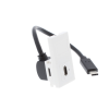 White USB 3.2 Type C striaght module with female to male cable approx 15cm, female socket on the module, male plug and rear of the lead. The Gen 1 USB C keystone euro module transmits power, data and audio visual at speeds up to 10Gbps. Approx 15cm in length.