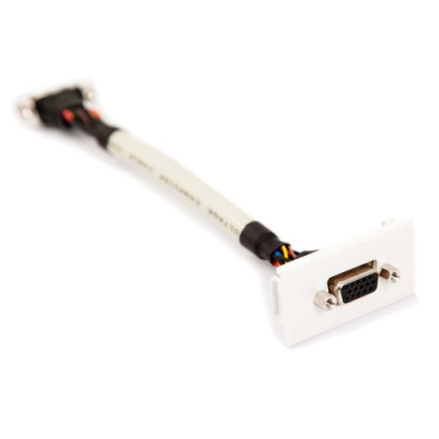 White VGA euro module with a 15cm lead presented with female sockets on the front and rear.