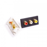 Twin phono rca white euro module presented with sockets on the front and solder tags on the rear.
