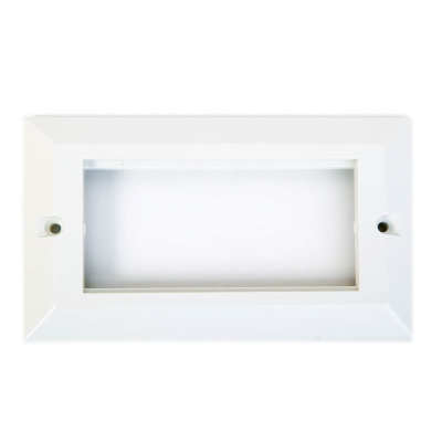Bevelled white wall plate frame for four 25mm x 50mm euro modules. Simple module clip in solution