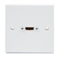 4k HDMI plug and play wall plate outlet has a female socket connection on the front and rear of the faceplate.