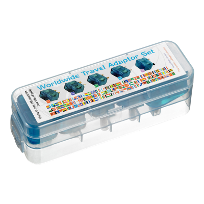 Worldwide travel adaptor plug set compatible for 150 countries.